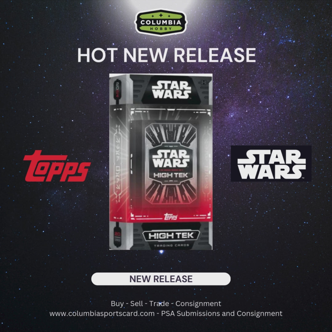 The 2024 Topps Star Wars High-Tek Hobby Box brings the galaxy far, far away to collectors with a futuristic, high-quality finish. Known for its unique acetate card stock and layered designs, this set features fan-favorite characters, iconic vehicles, and memorable moments from the Star Wars universe. Each box includes base cards with intricate patterns, stunning parallels, and rare autograph cards signed by cast members from the franchise. With its cutting-edge look and premium feel, the High-Tek Hobby Box offers an immersive experience for Star Wars fans and collectors alike, making it a standout addition to any collection.